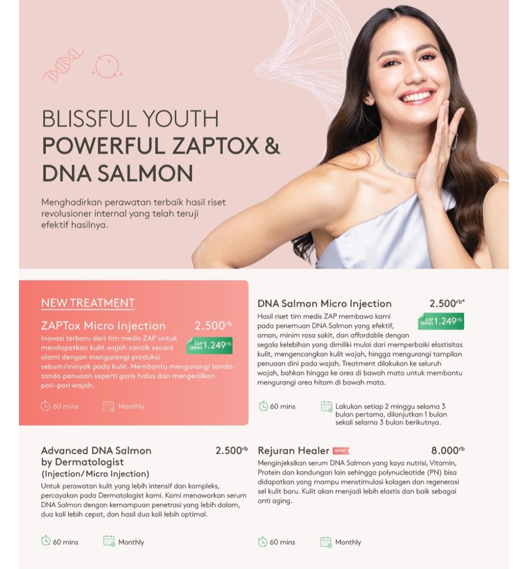 Lalu, apakah ada pilihan treatment lain di ZAP Clinic yang harganya di bawah 500ribu? Ya, tentu ada. Berikut ini beberapa list harga treatment di ZAP, baik ZAP Clinic atau ZAP Premiere: